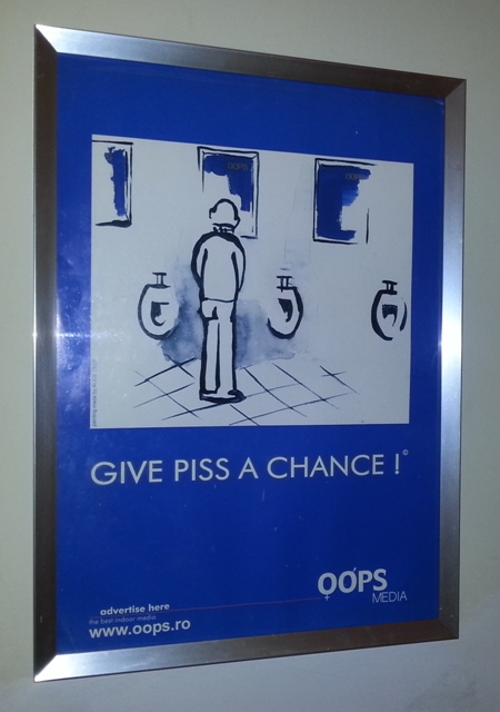 Cum pe vremea aceea nu exista internetul iar de tipărit nici nu putea fi vorba, suportul de comunicare era WC-ul, mai exact cele patru laturi ale cabinei. Venea „publicul ţintă”, rezolva problema, mai citea, se mai informa… Avantajul faţă de internet era faptul că, dacă accesarea acestuia nu este obligatorie, cea a WC-ului era, este şi va fi. Ceea ce a determinat, în zilele noastre, transformarea vespasianelor de lux din localuri, în spaţii publicitare. Îndrăzneala acestei iniţiative îi aparţine firmei de publicitate OOOPS Media.