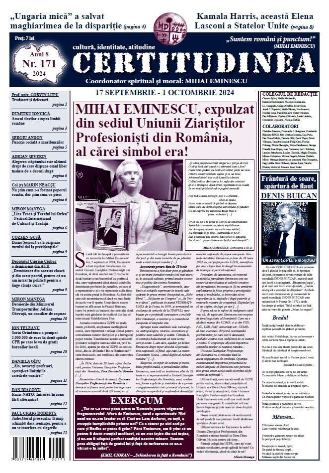● MIRON MANEGA. Mihai Eminescu, expulzat din sediul Uniunii Ziariștilor Profesioniști din România, al cărei simbol era!