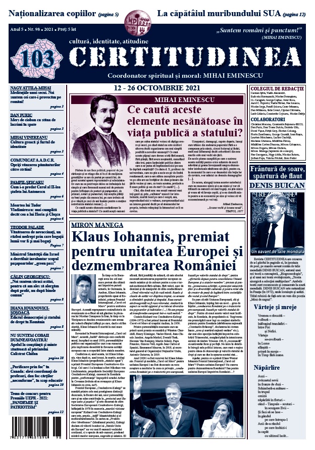 ● MIRON MANEGA. Klaus Iohannis, premiat pentru unitatea Europei și dezmembrarea României
