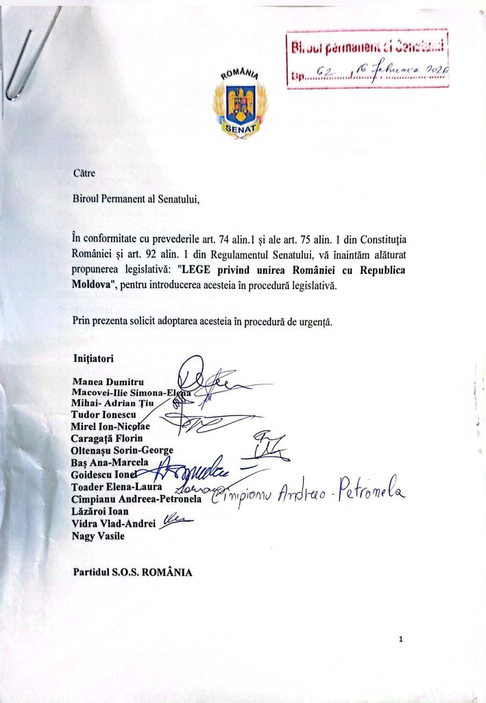 Proiect de lege depus la Biroul Permanent al Senatului, de Partidul S.0.S. România, la 16 februarie 2026
